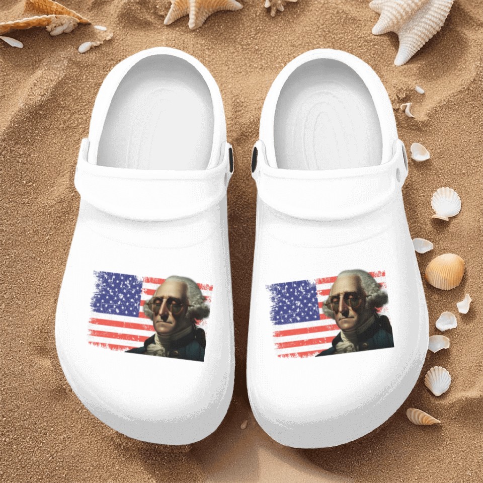 You're searching for a one-of-a-kind product Merica George Washington Independence Day USA Nurse Clogs For Men WHITE belong theme Nurse Clogs at Printblur