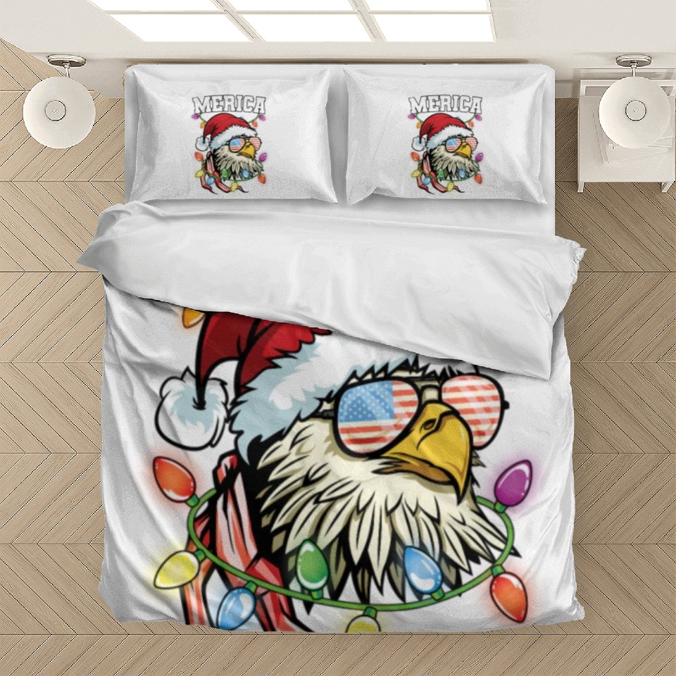 You are viewing an exclusive and elegant product Merica Usa Flag Patriotic Veteran Santa Bald Eagle Bedding Sets For WHITE belong theme Bedding Sets at Printblur