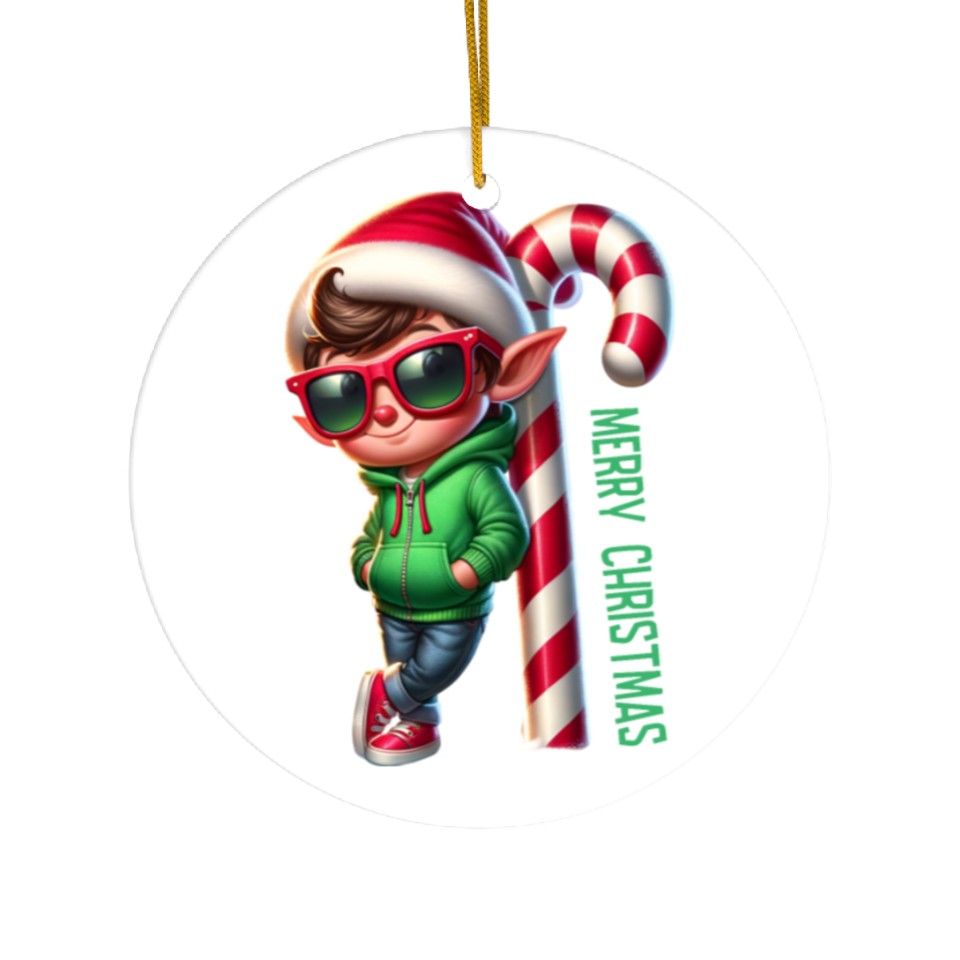 You are contemplating one of the best-selling products Merry Christmas Cool Elf with Candy Cane Vibes Ceramic Ornaments For WHITE belong theme Ceramic Ornaments at Printblur