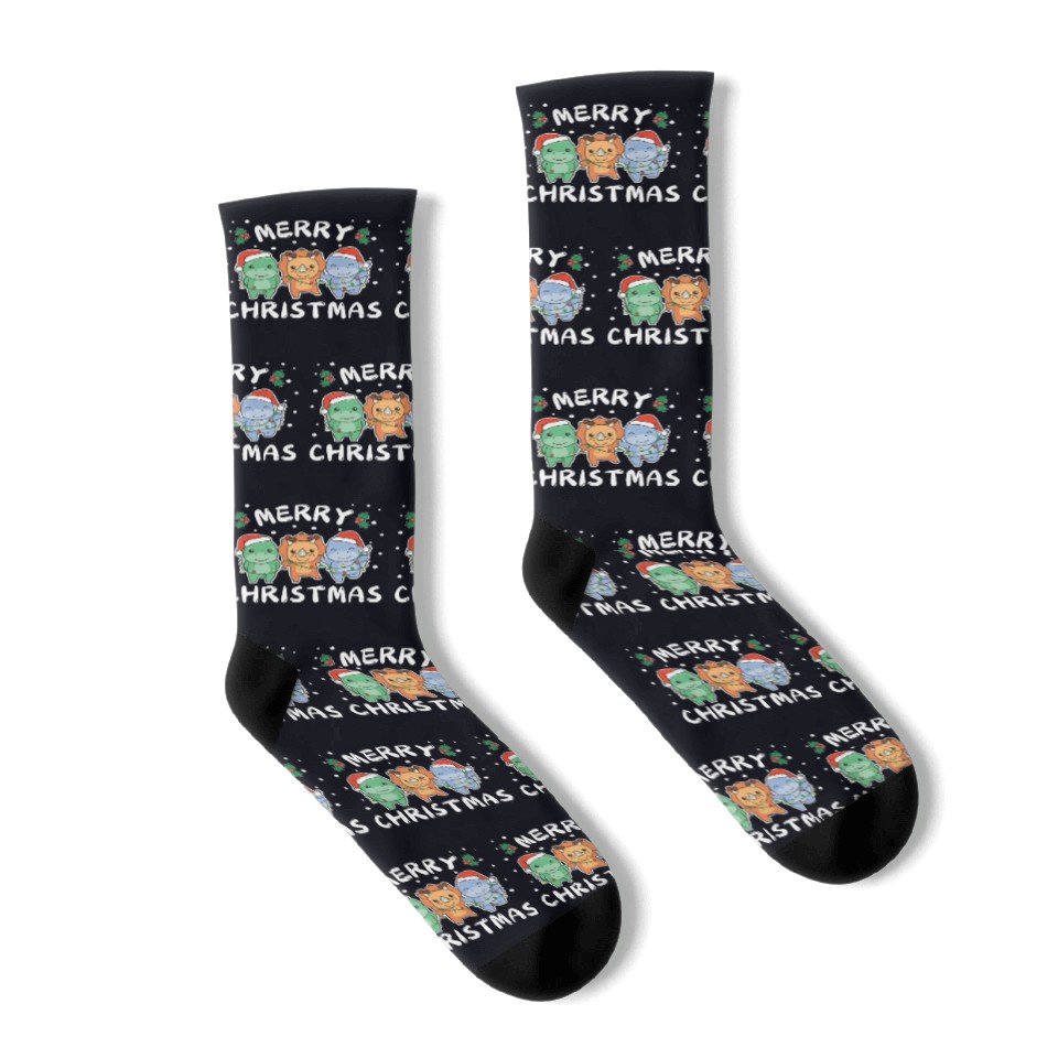 Buy eye-catching Merry Christmas Cute Dino Festive Lights Dino Socks or see more Socks products at Printblur shop now to explore many surprises from our shop!