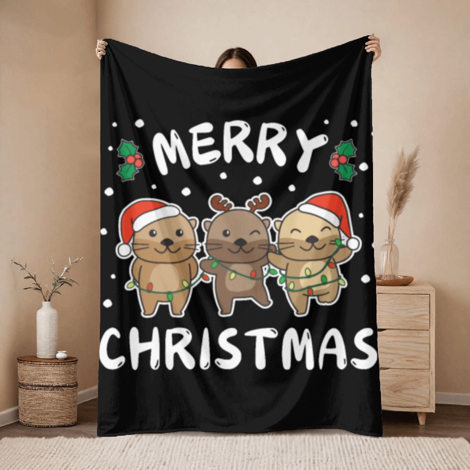 You are viewing one of the trendiest products Merry Christmas Cute Otter Festive Lights Otter Throw Blankets For Black belong theme Throw Blankets at Printblur
