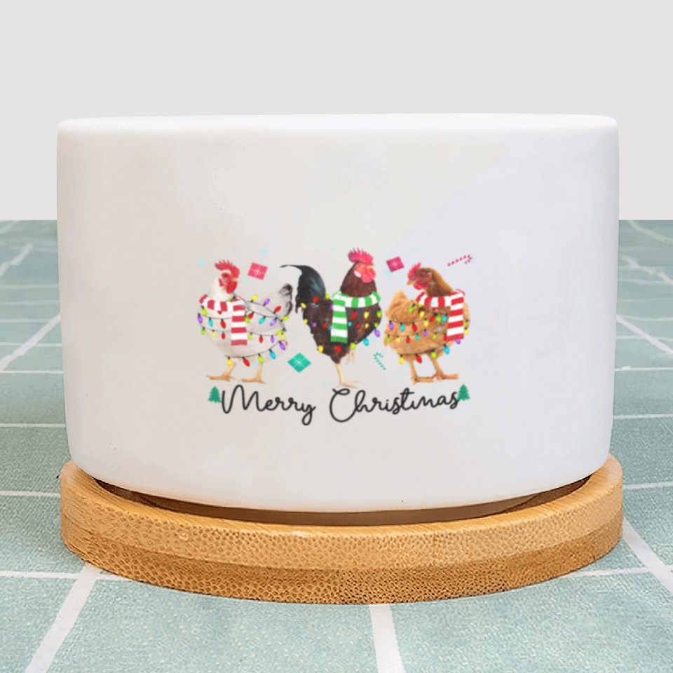 Merry Christmas Funny Chicken With Christmas Light Plant Pots