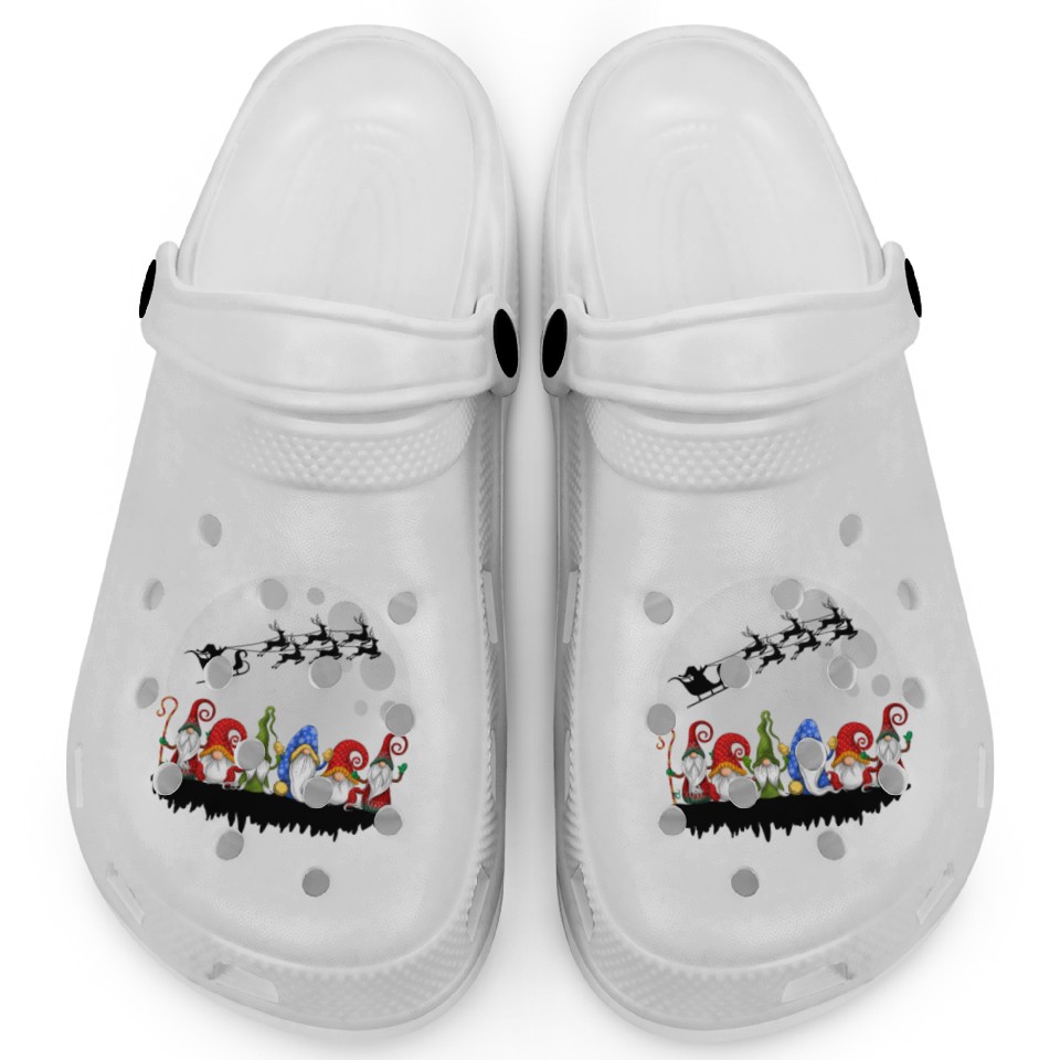 The item hot trend you're looking at is Merry Christmas Gnomes Squad Xmas Family Clogs For Kids WHITE belong theme Clogs at Printblur