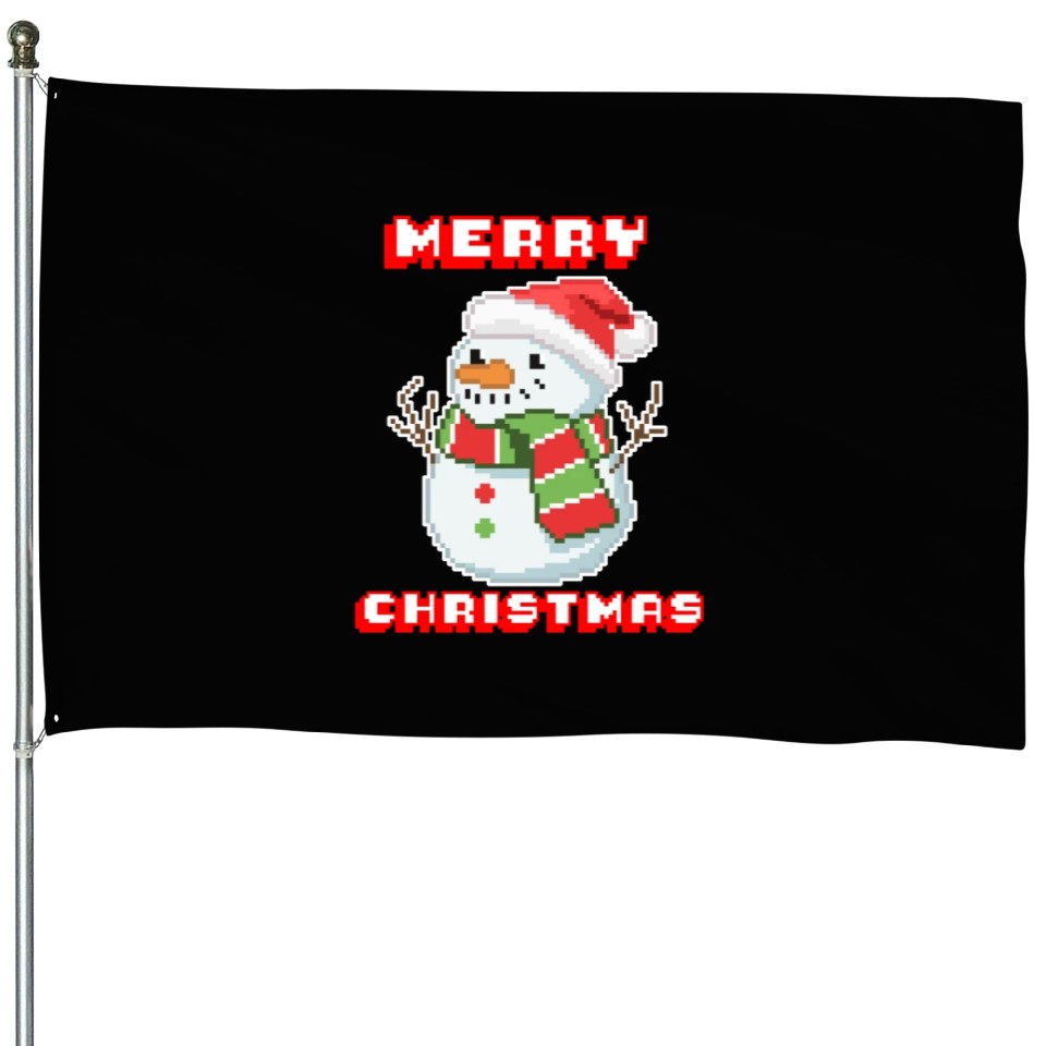 The item hot trend you're looking at is Merry Christmas I Xmas I 8 Bit Pixelated Snowman House Flags For Black belong theme House Flags at Printblur