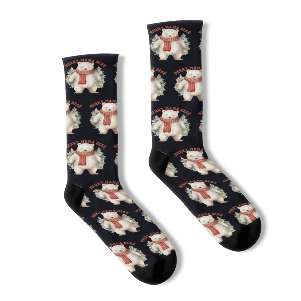 Buy eye-catching Merry Mama Bear Vintage Christmas Polar Bear Socks or see more Socks products at Printblur shop now to explore many surprises from our shop!