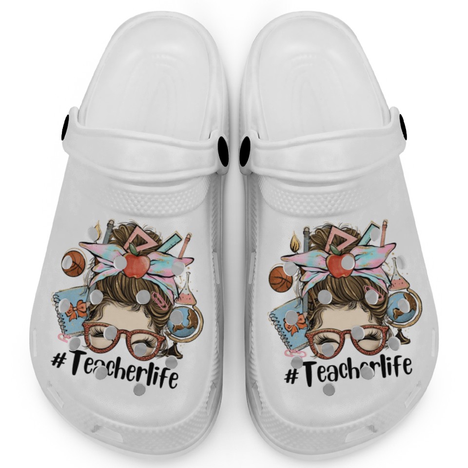 Shop for impressive Messy Bun Teacher Life Sublimation Clogs or see more Clogs products right now on Printblur to enjoy your happiness!