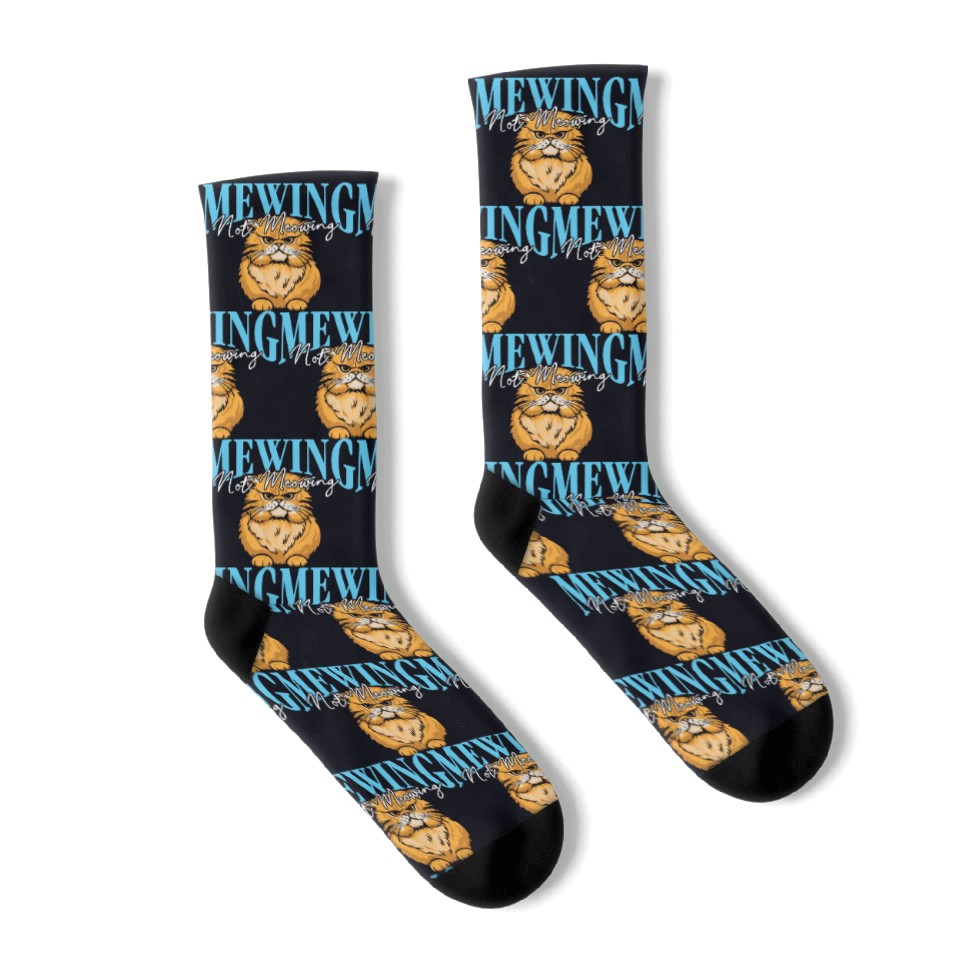 Shop for attractive Mewing Not Meowing Funny Cat Meme Jawline Socks or see more Socks products on https://printblur.com right now!