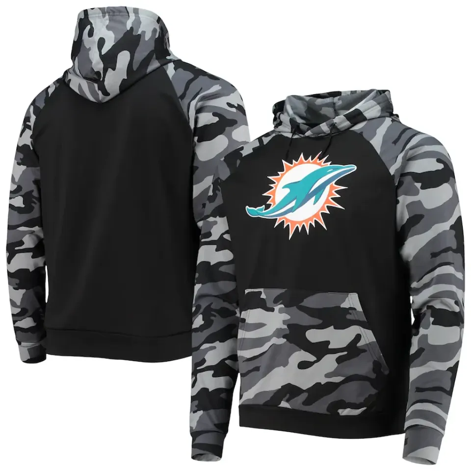 Shop for attractive Miami football Camo Raglan Pullover Hoodie Black or see more 3D Hoodies products on https://printblur.com right now!