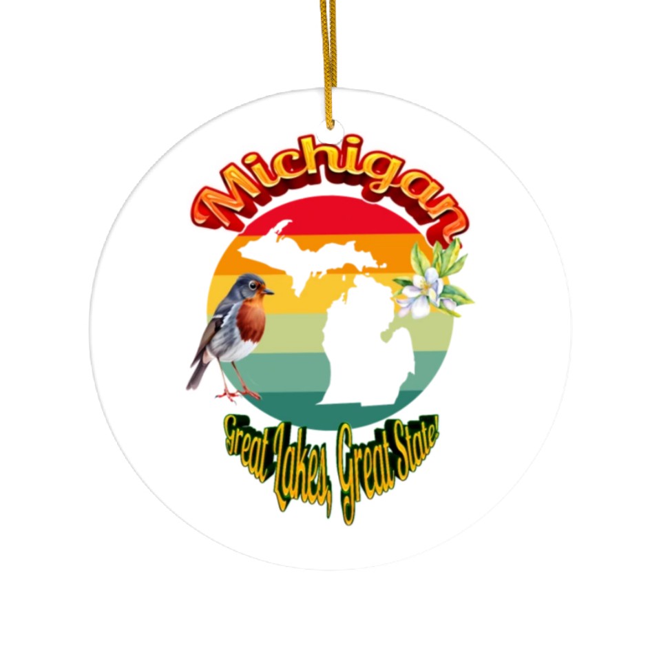 Buy eye-catching Michigan: Great Lakes, Great State! Ceramic Ornaments or see more Ceramic Ornaments products at Printblur shop now to explore many surprises from our shop!