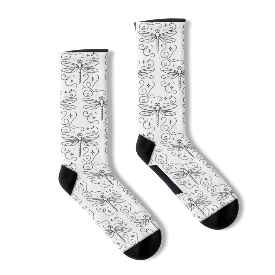 You are viewing an exclusive and elegant product “Minimal line art dragonfly, soft curves, modern Socks For Black belong theme Socks at Printblur