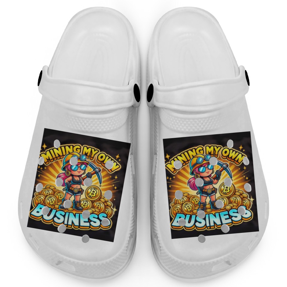 You're looking at the eye-catching product Mining My Own Business Female Clogs For Kids WHITE belong theme Clogs at Printblur