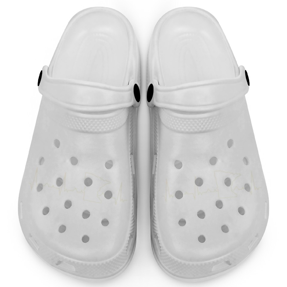 You are seeing a unique and impressive product Minnesota State USA. Heart. Love. EKG. Pulse. Clogs For Kids WHITE belong theme Clogs at Printblur