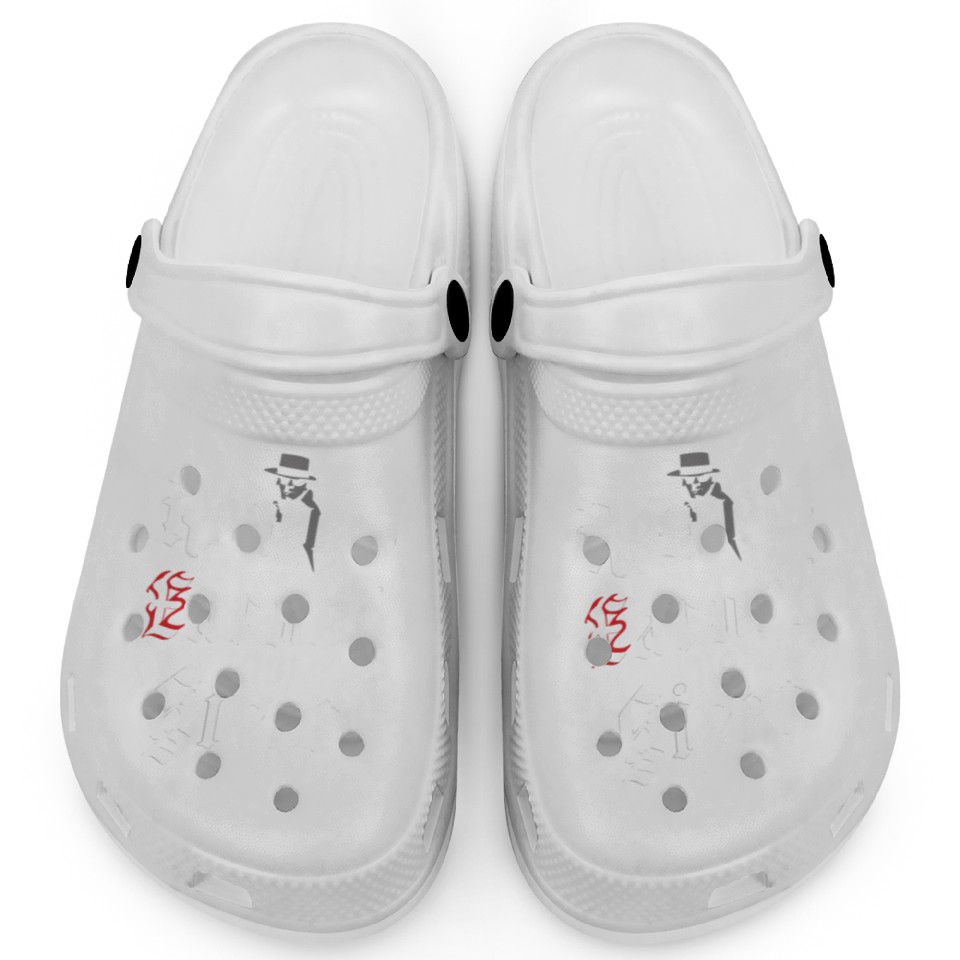 You're taking a peek at the product Mobster Gangster Mafia Organized Crime Boss Clogs For Kids WHITE belong theme Clogs at Printblur