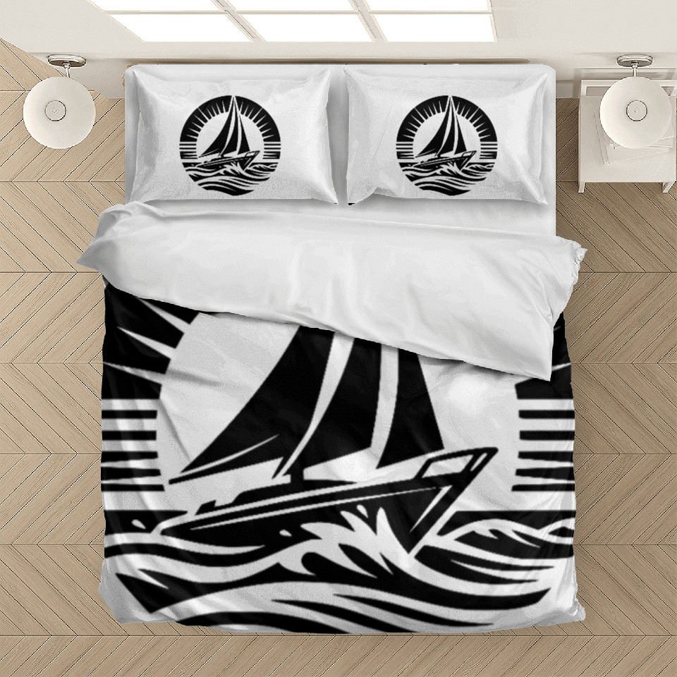 You're searching for a one-of-a-kind product Modern Sailboat With Wave Emblem Bedding Sets For WHITE belong theme Bedding Sets at Printblur