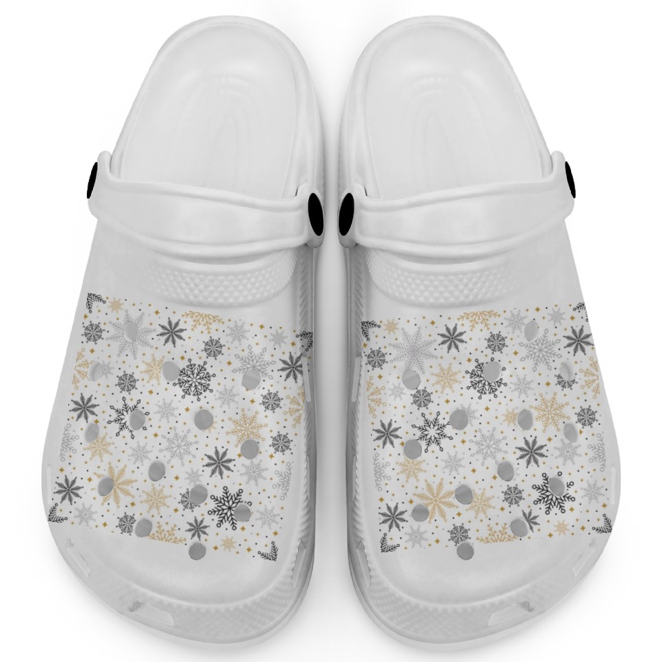 Modern Snowflakes Pattern White Gold Clogs