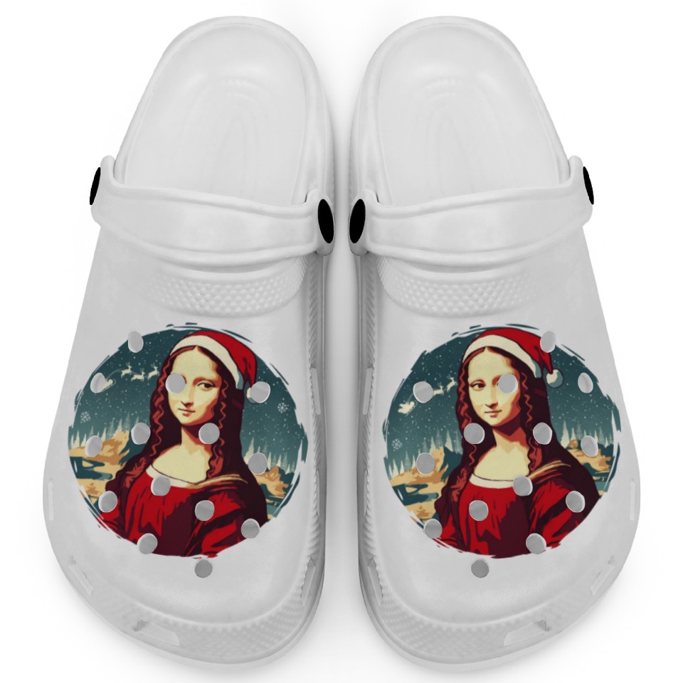 Buy eye-catching Mona Lisa Funny Christmas Art Clogs or see more Clogs products at Printblur shop now to explore many surprises from our shop!