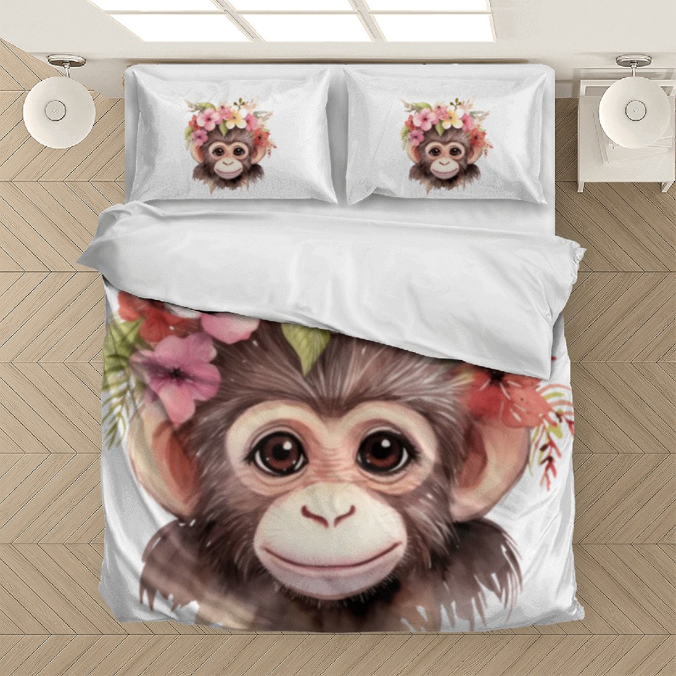 You are viewing an exclusive and elegant product Monkey Chimpanzee Jungle Animal Boho Floral Ape Bedding Sets For WHITE belong theme Bedding Sets at Printblur