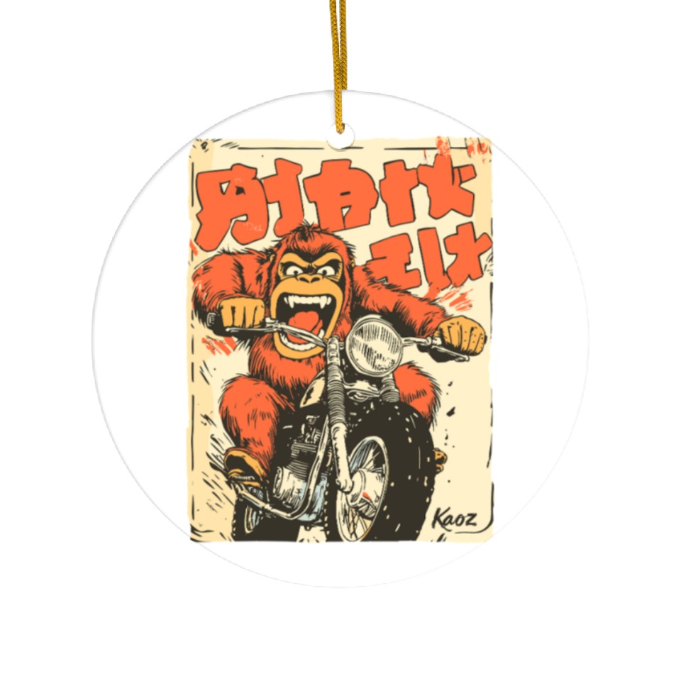 The product unique design you searched for is Monkey Mayhem – Vintage Ape on a Motorcycle Ceramic Ornaments For WHITE belong theme Ceramic Ornaments at Printblur