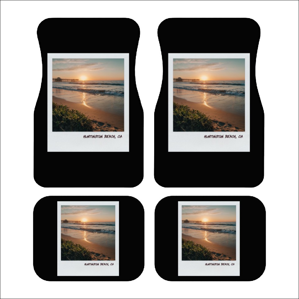 You are viewing an exclusive and elegant product Mono Enterprises "Travels" Huntington Beach Car Mats For Black belong theme Car Mats at Printblur