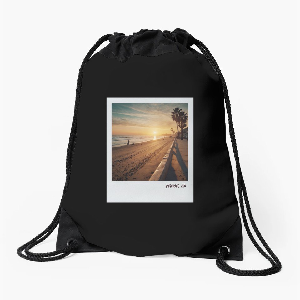 You're searching for a one-of-a-kind product Mono Enterprises "Travels" Venice Beach #3 Drawstring Bags For Black belong theme Drawstring Bags at Printblur