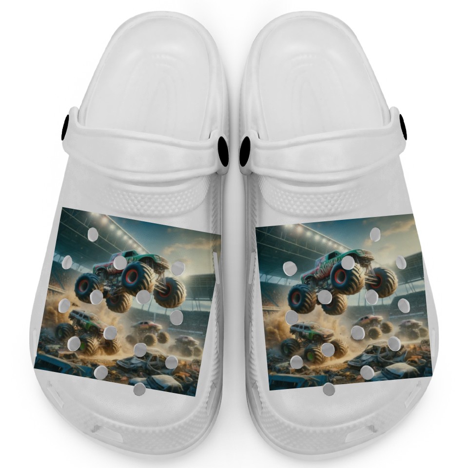 You are viewing one of the trendiest products Monster Madness Monster Trucks Clogs For Kids WHITE belong theme Clogs at Printblur