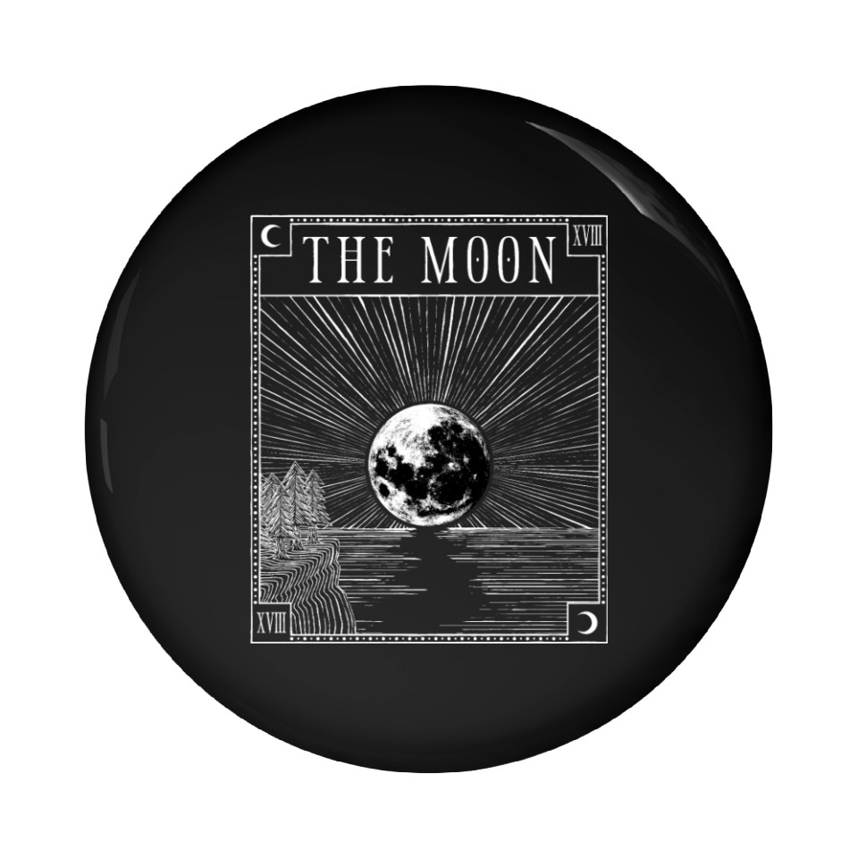 The item hot trend you're looking at is Moon Tarot Card XVIII Occult Witchcraft Gothic Pin Buttons For Black belong theme Pin Buttons at Printblur