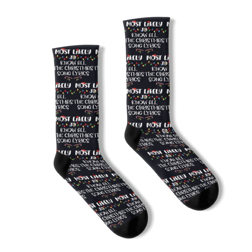 Shop for impressive Most Likely To Christmas Know All The Xmas Song Socks or see more Socks products right now on Printblur to enjoy your happiness!