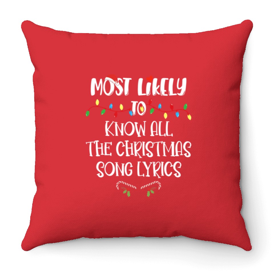 You're searching for a one-of-a-kind product Most Likely To Christmas Know All The Xmas Song Throw Pillows For Cover Only Red belong theme Throw Pillows at Printblur