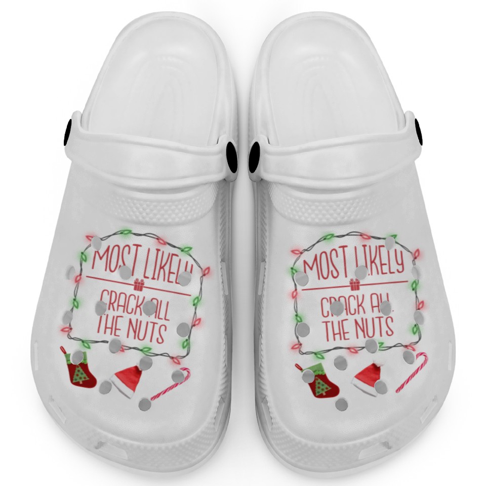 Most Likely To Crack All The Nuts Funny Christmas Clogs