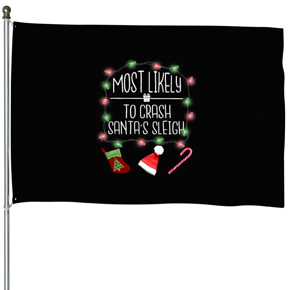 Buy eye-catching Most Likely To Crash Santa's Sleigh Funny Christma House Flags or see more House Flags products at Printblur shop now to explore many surprises from our shop!