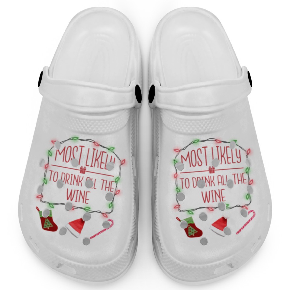 Most Likely To Drink All The Wine Funny Christmas Clogs