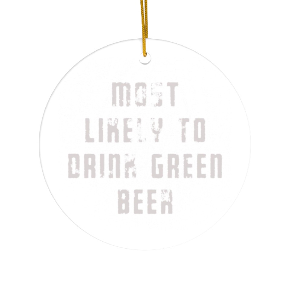 The product unique design you searched for is MOST LIKELY TO DRINK GREEN BEER Ceramic Ornaments For WHITE belong theme Ceramic Ornaments at Printblur