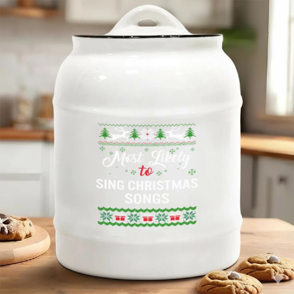 You are seeing a unique and impressive product Most Likely To Sing Christmas Songs Ceramic Cookie Jars, Womens For belong theme Ceramic Cookie Jars at Printblur