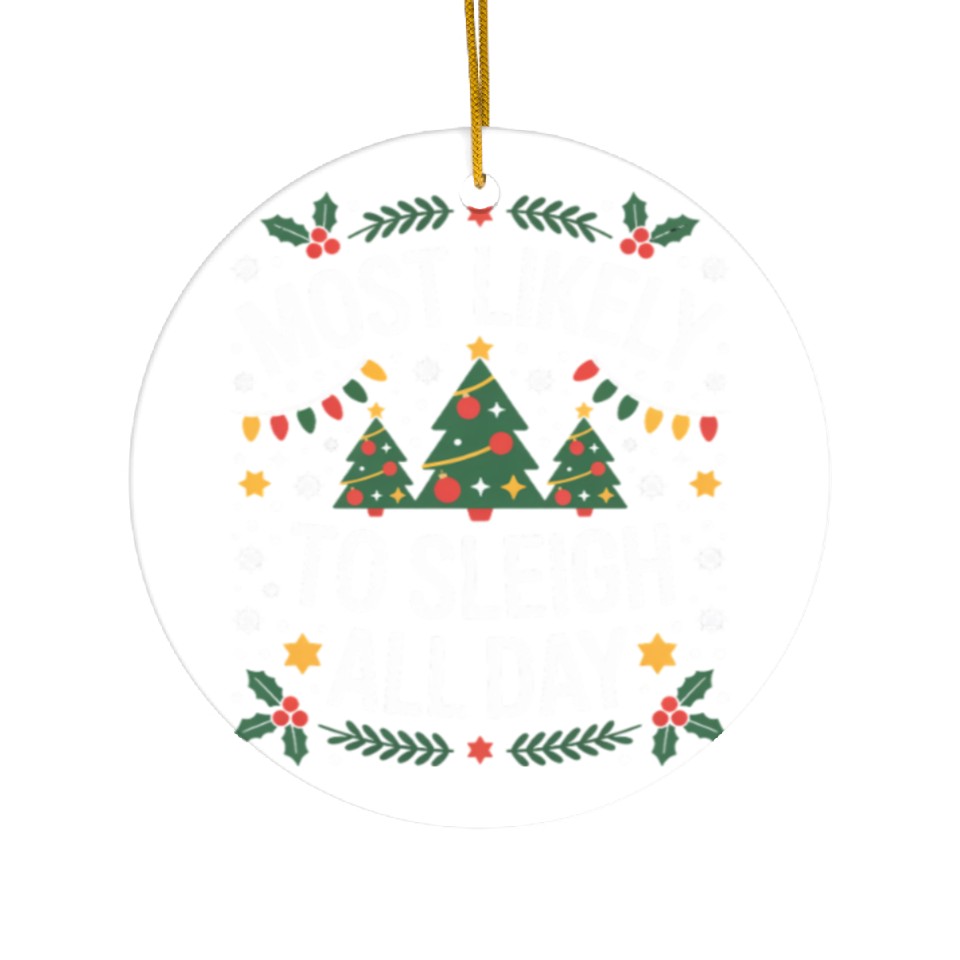 You're looking at the eye-catching product Most Likely To Sleigh All Day Christmas Ceramic Ornaments For WHITE belong theme Ceramic Ornaments at Printblur