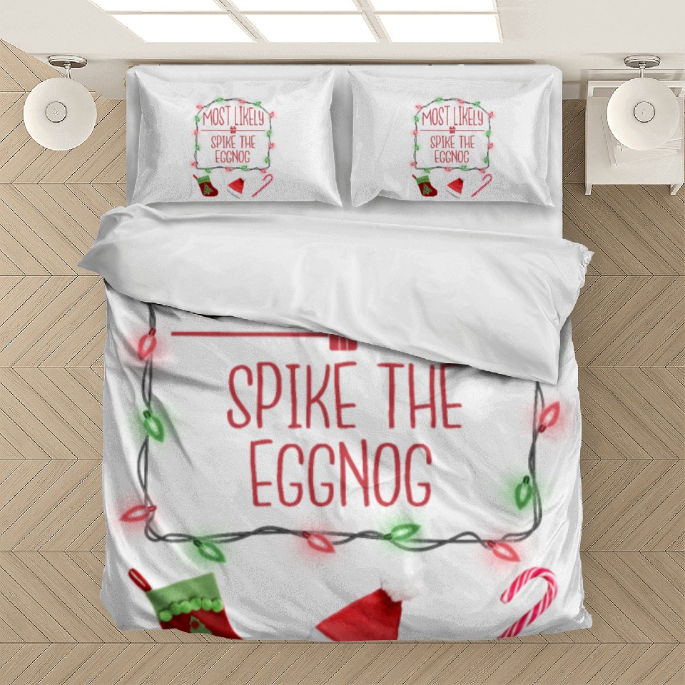 Buy eye-catching Most Likely To Spike The Eggnog Funny Christmas Bedding Sets or see more Bedding Sets products at Printblur shop now to explore many surprises from our shop!