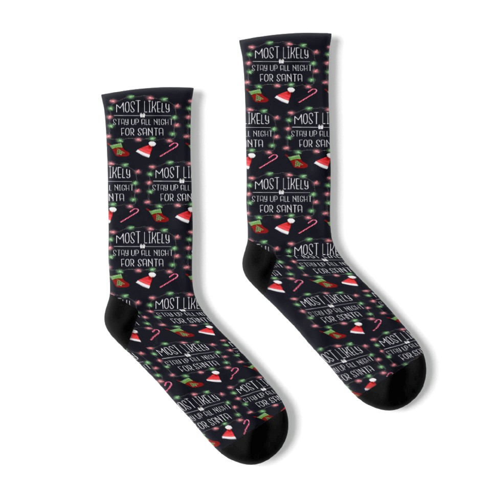 Shop for attractive Most Likely To Stay Up All Night For Santa Xmas Socks or see more Socks products on https://printblur.com right now!
