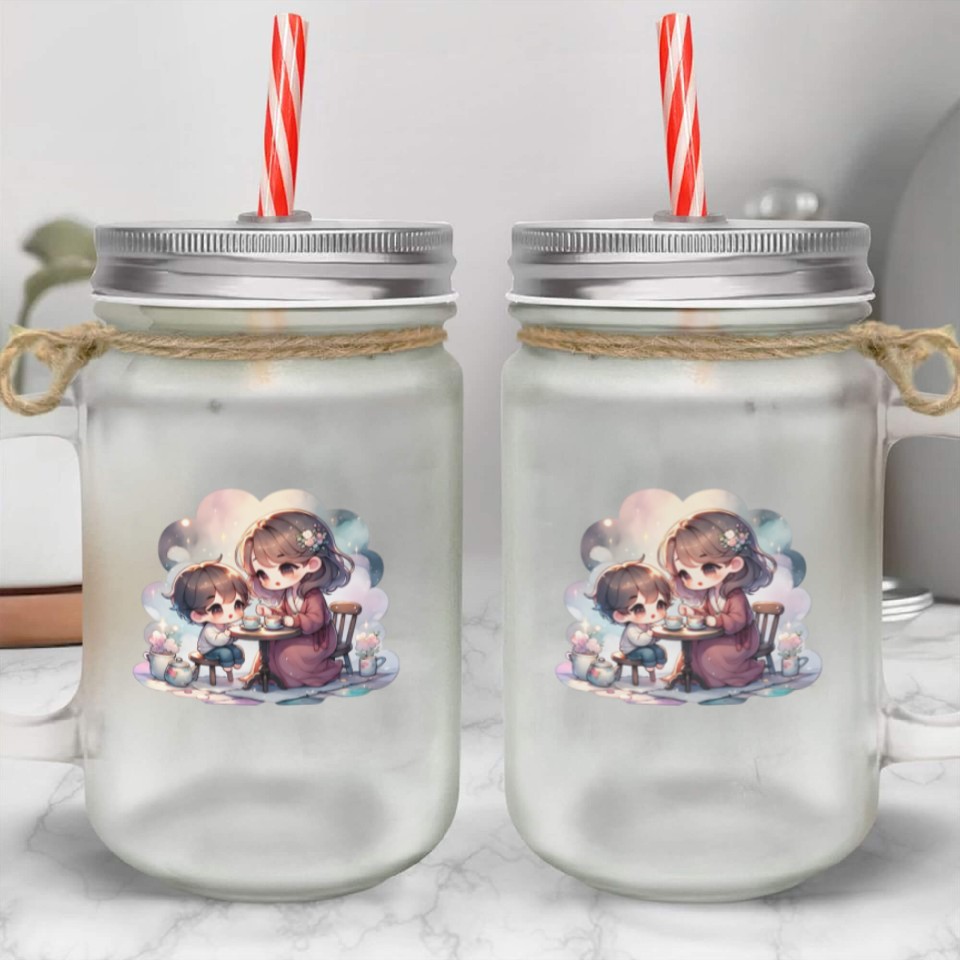 The item hot trend you're looking at is Mother and Son Enjoying a Cozy Tea Party Mason Jar Cups For belong theme Mason Jar Cups at Printblur