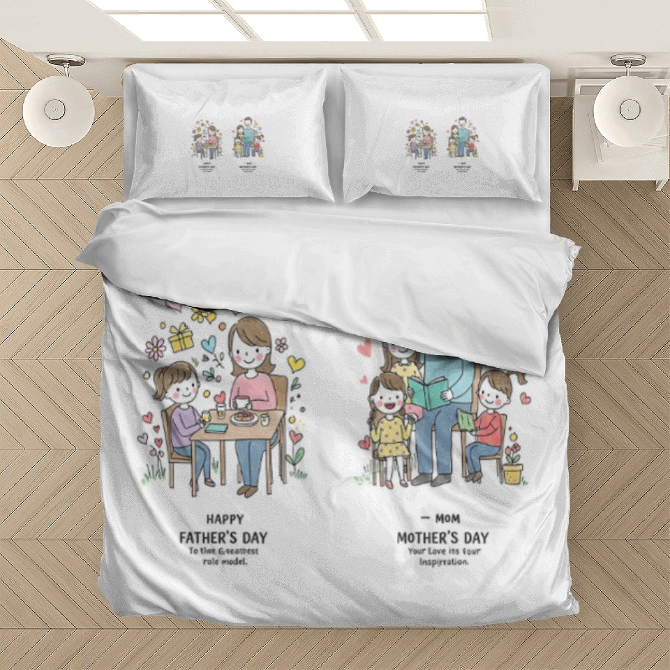You are shopping for a stunning and trendy product Mother's Day Family Illustration - Versatile Graph Bedding Sets For WHITE belong theme Bedding Sets at Printblur