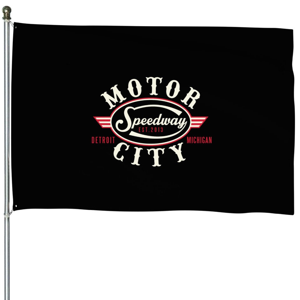 You are viewing an exclusive and elegant product MOTOR CITY SPEEDWAY House Flags For Black belong theme House Flags at Printblur