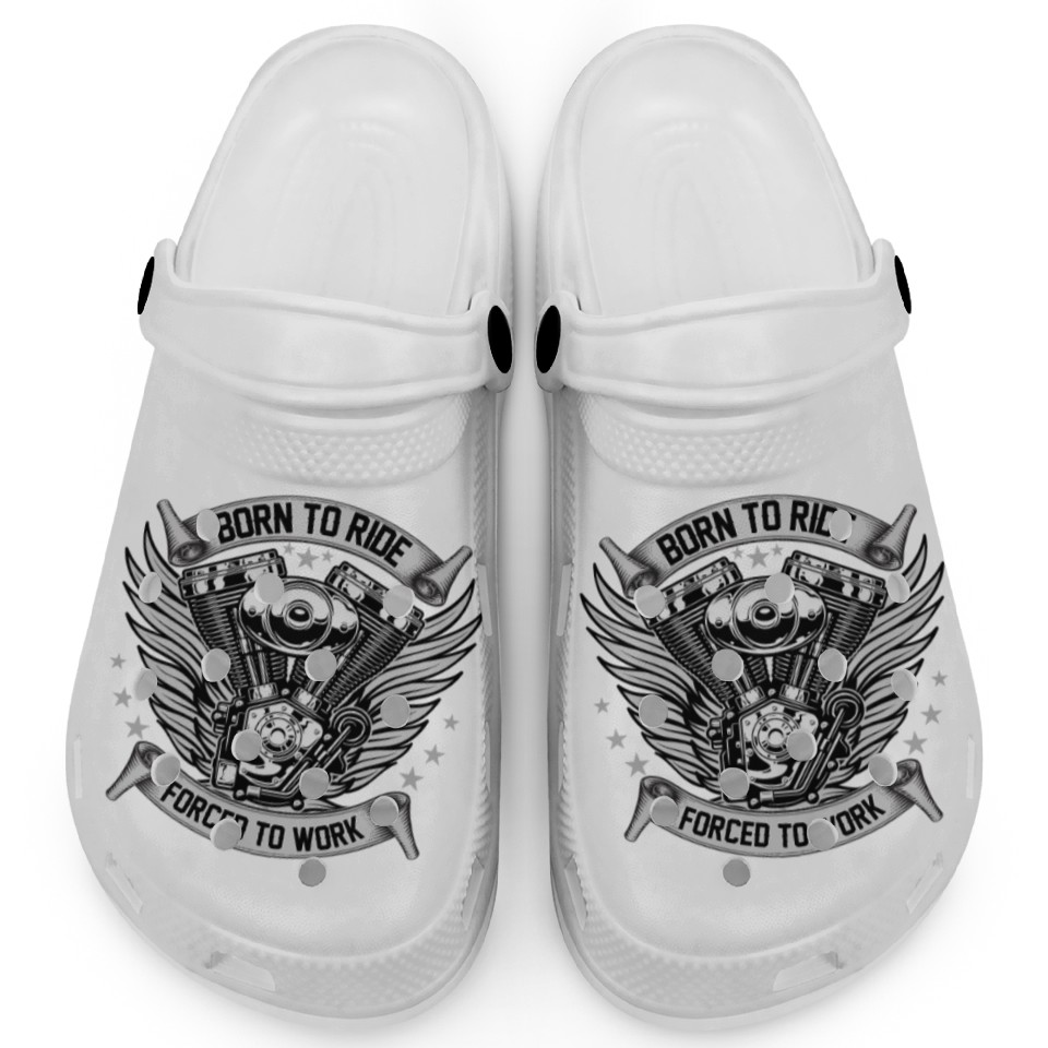 Shop for attractive MOTORCYCLE, BORN TO RIDE FORCED TO WORK Clogs or see more Clogs products on https://printblur.com right now!