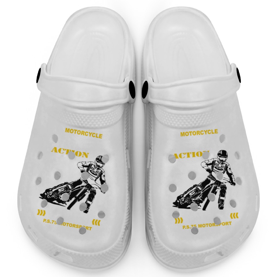 You are contemplating one of the best-selling products Motorcycle Speedway Racing Clogs For Kids WHITE belong theme Clogs at Printblur