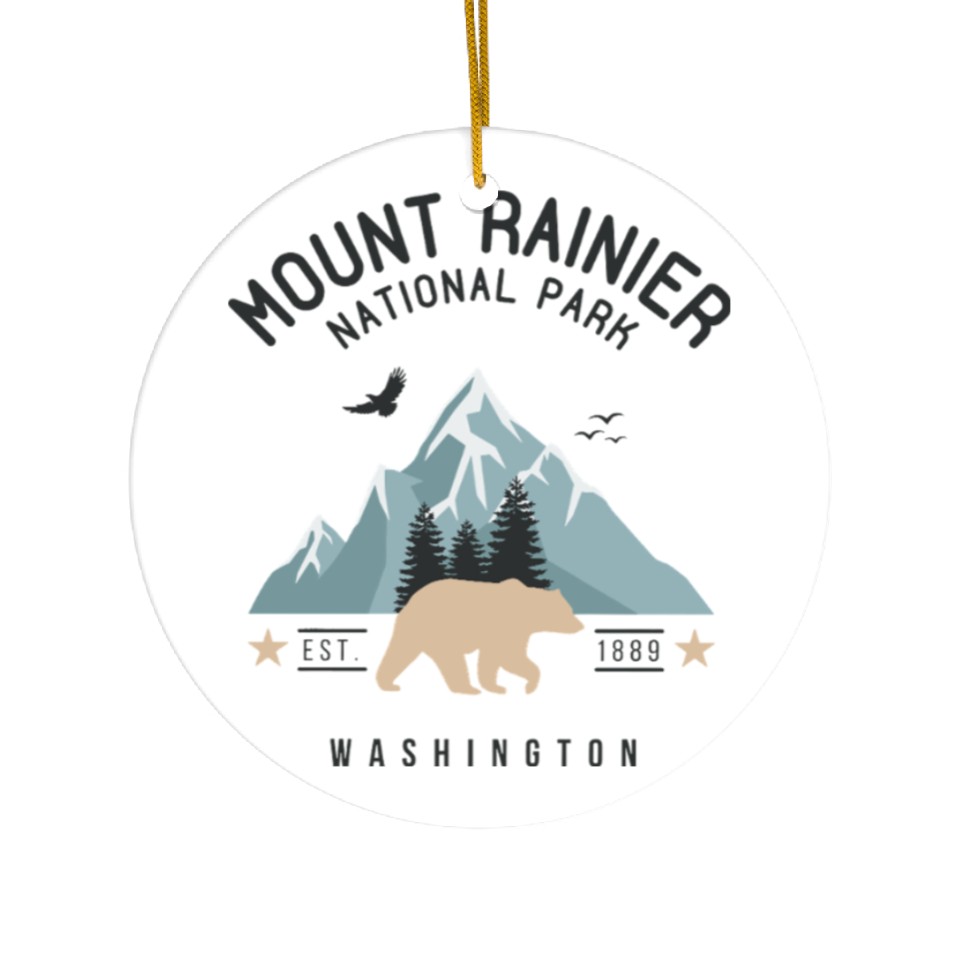 You're searching for a one-of-a-kind product Mount Rainier National Park Est. 1889 Washington Ceramic Ornaments For WHITE belong theme Ceramic Ornaments at Printblur