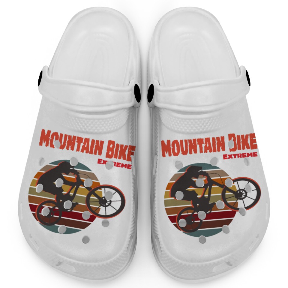 You're looking at the eye-catching product Mountain Biker Art Clogs For Kids WHITE belong theme Clogs at Printblur