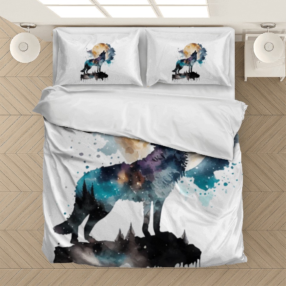 Own fascinating Mountain Wolf Multicolor Watercolor Portrait Bedding Sets or see more Bedding Sets products now from Printblur shop to enjoy your shopping time!