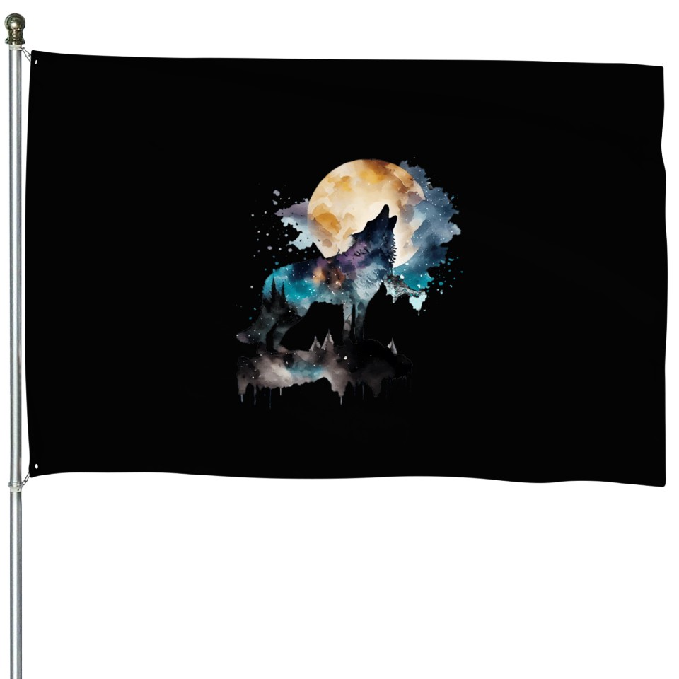 You are shopping for a stunning and trendy product Mountain Wolf Multicolor Watercolor Portrait House Flags For Black belong theme House Flags at Printblur
