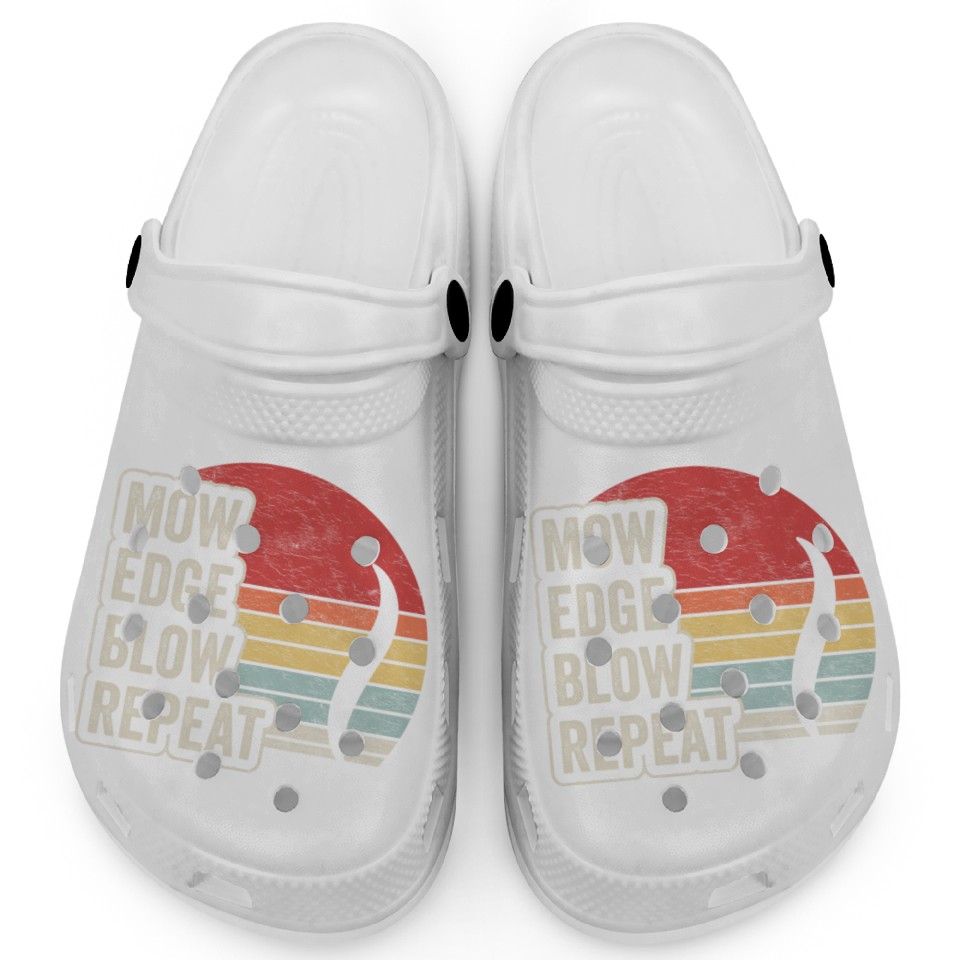 Shop for attractive Mow Edge Blown Repeat Lawn Mowing Lawn Mower Retro Clogs or see more Clogs products on https://printblur.com right now!