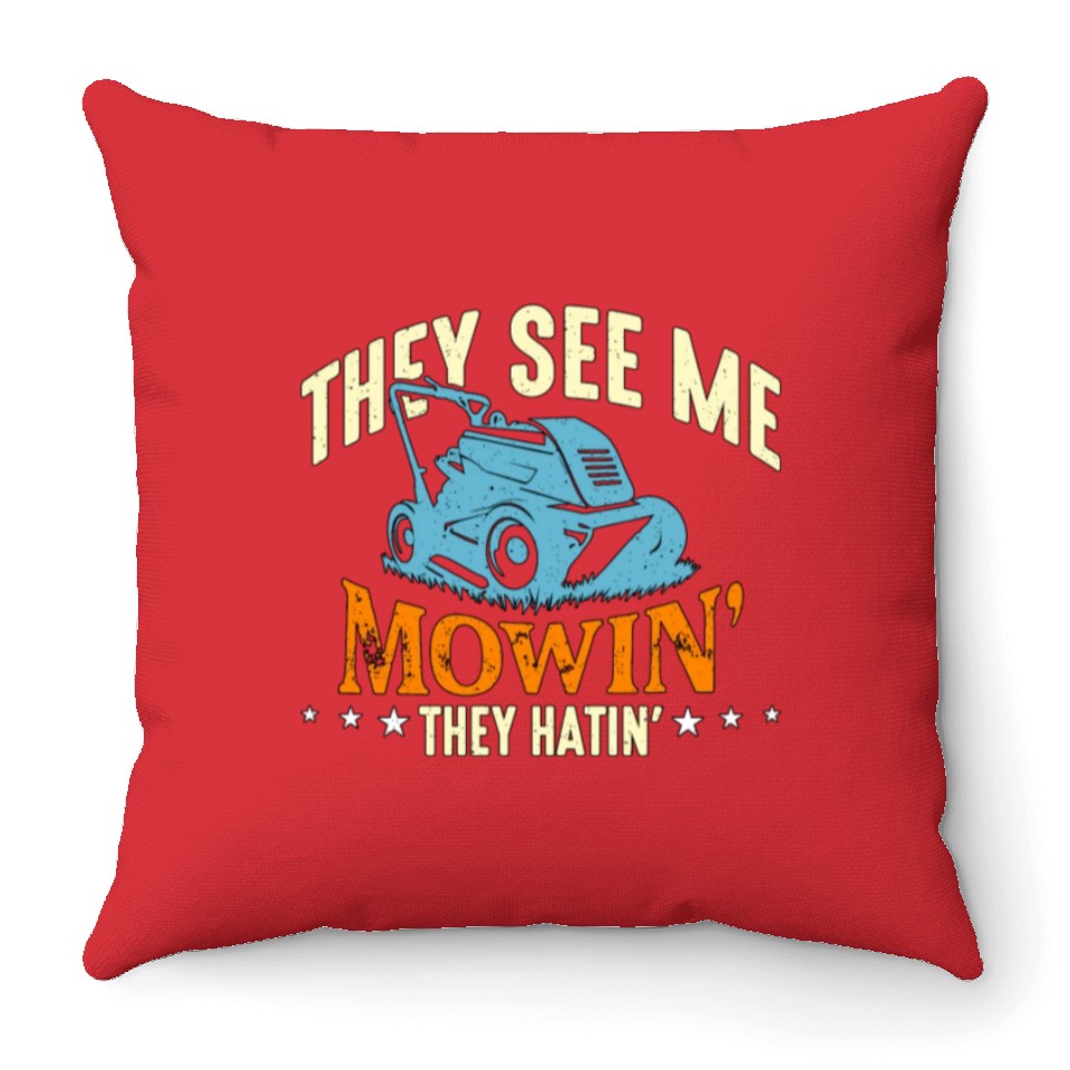 Shop for attractive Mower They See Me Mowin' They Hatin' Lawn Mowing Throw Pillows or see more Throw Pillows products on https://printblur.com right now!