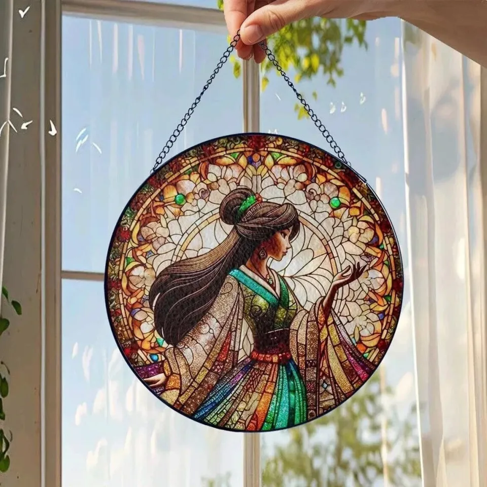You are shopping for a stunning and trendy product Mulan Princess Stained Glass Suncatcher Window Hanging Decor For belong theme Window Hanging Suncatcher Ornaments at Printblur