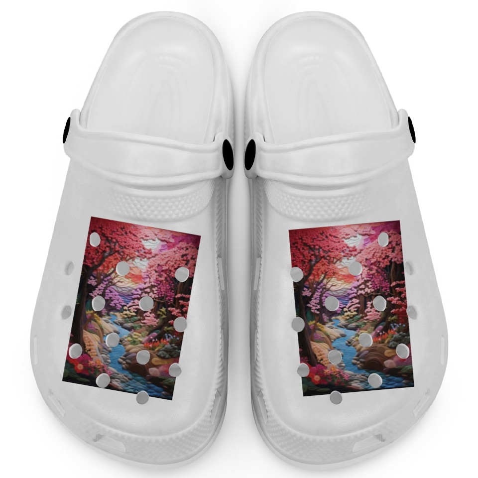 You are shopping for a stunning and trendy product Multi-color Zen Garden river - Japanese Clogs For Kids WHITE belong theme Clogs at Printblur