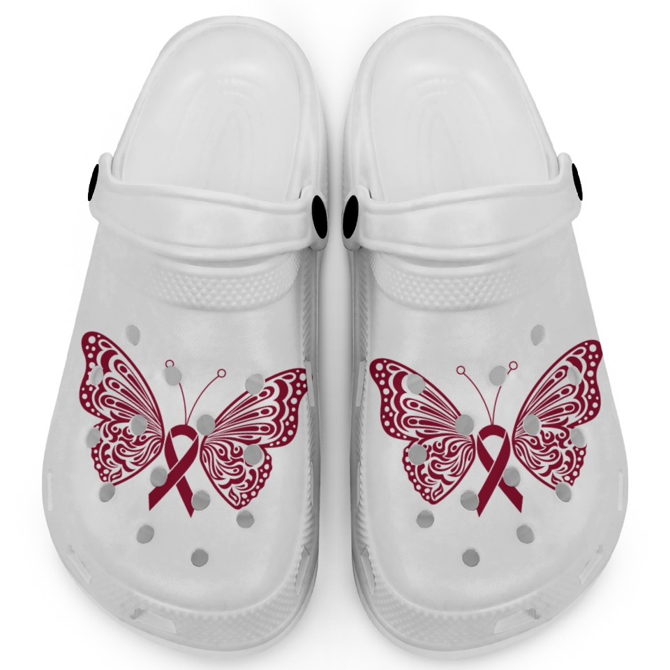 Shop for attractive Multiple Myeloma Burgundy Ribbon Butterfly Wings Clogs or see more Clogs products on https://printblur.com right now!